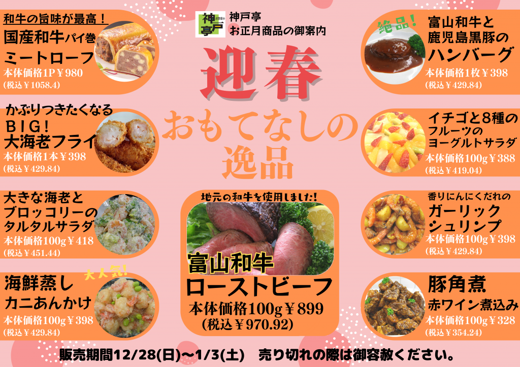「神戸亭」おもてなしの逸品 12/28(日)~1/3(土)