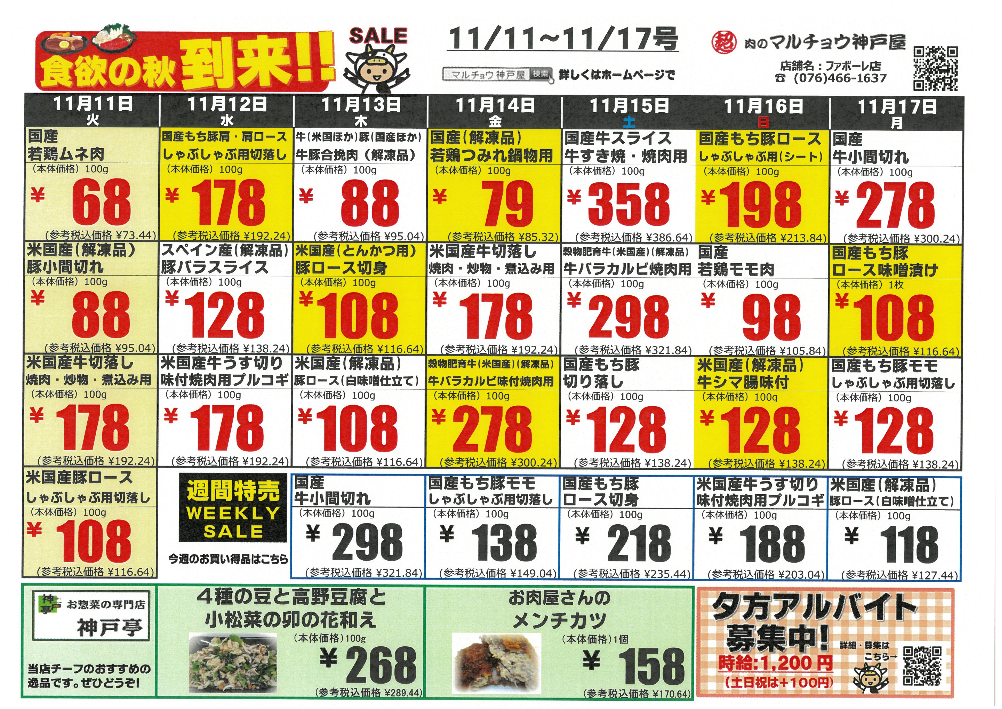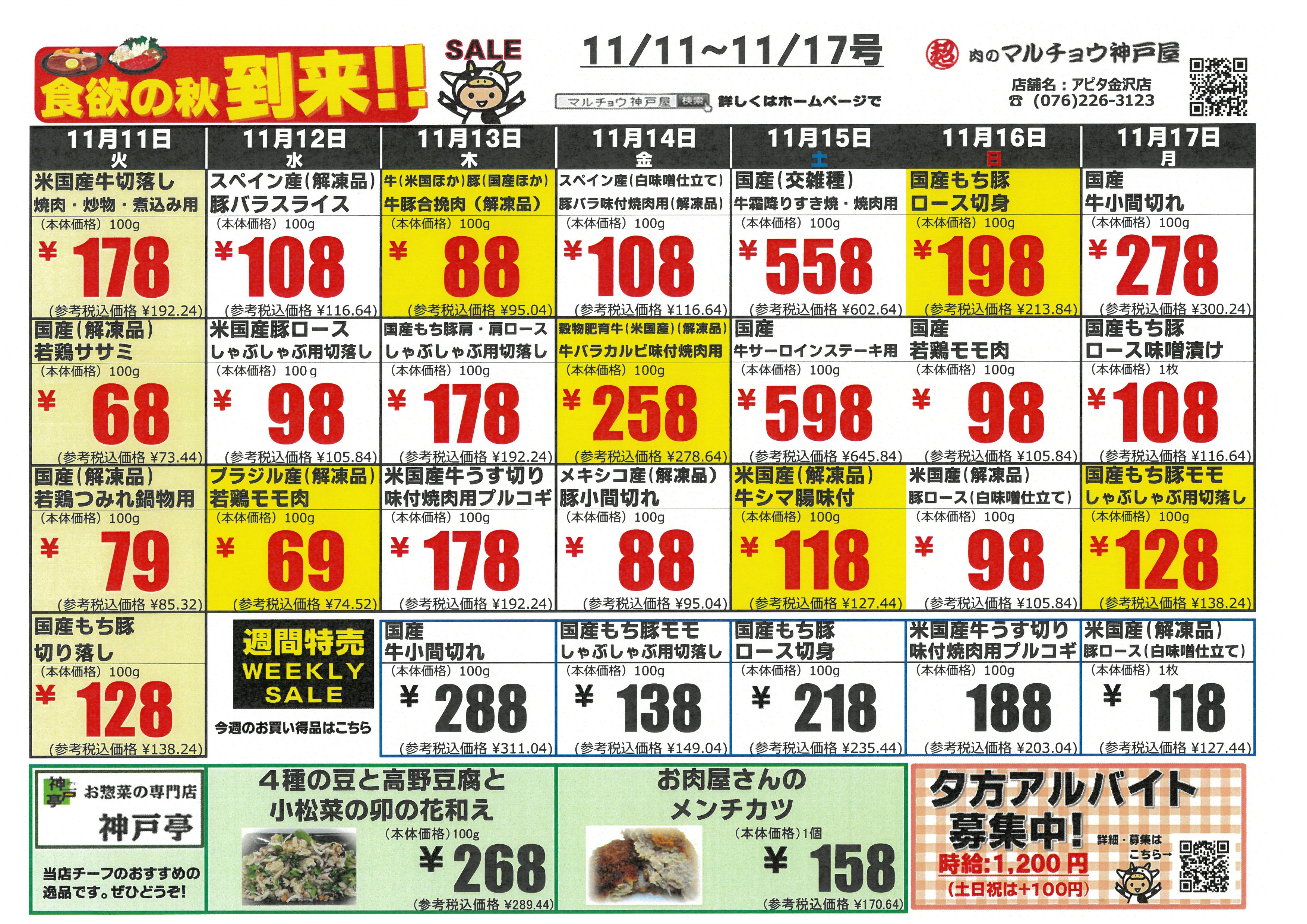 | アル・プラザ津幡店 | 2025年11月11日(火) ~ 11月17日(月) | |