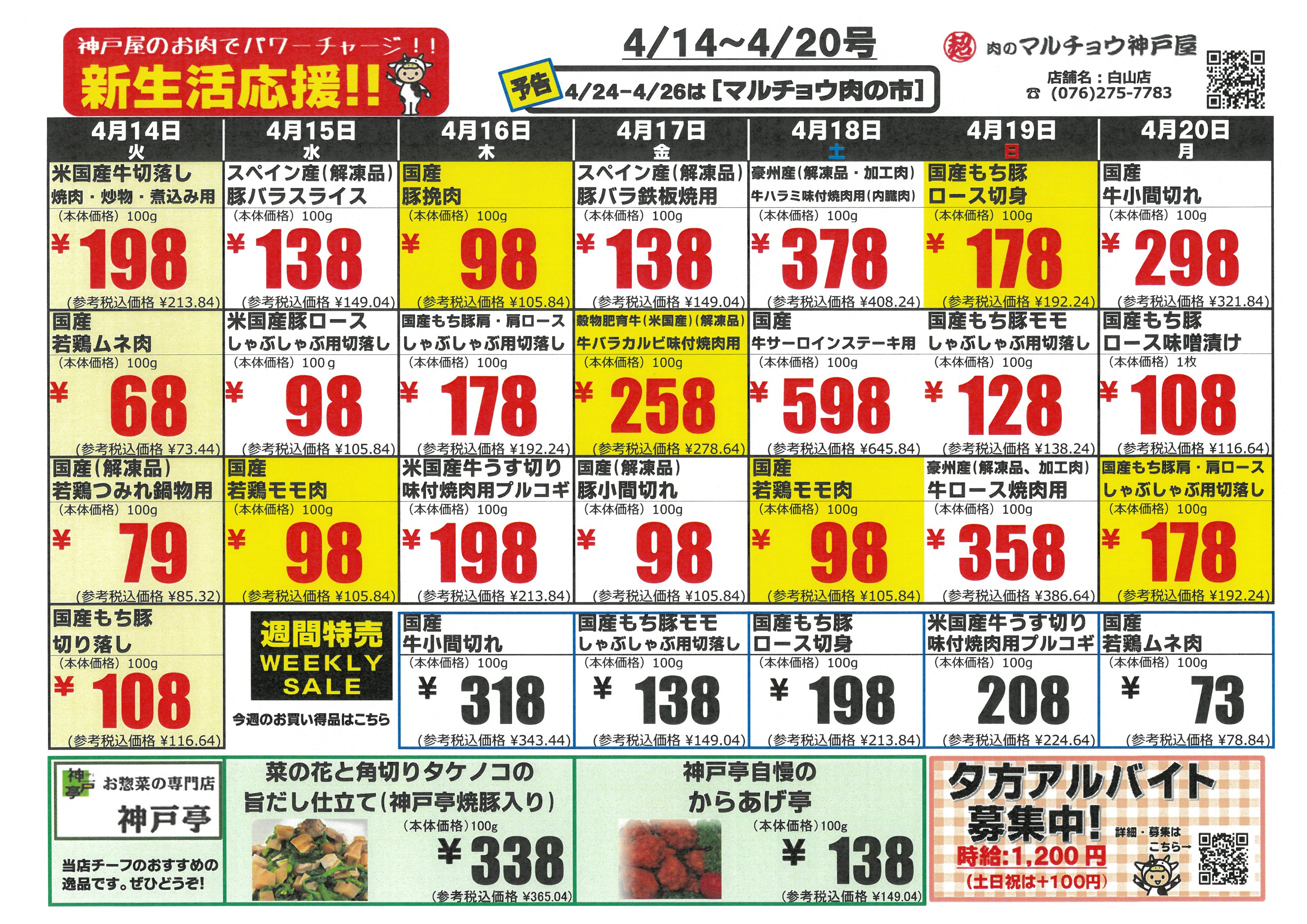 | ラスパ白山店 | 2026年4月14日(火) ~ 4月20日(月) |